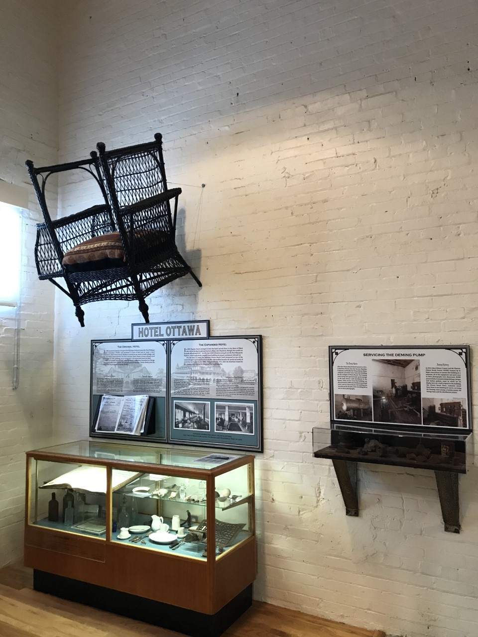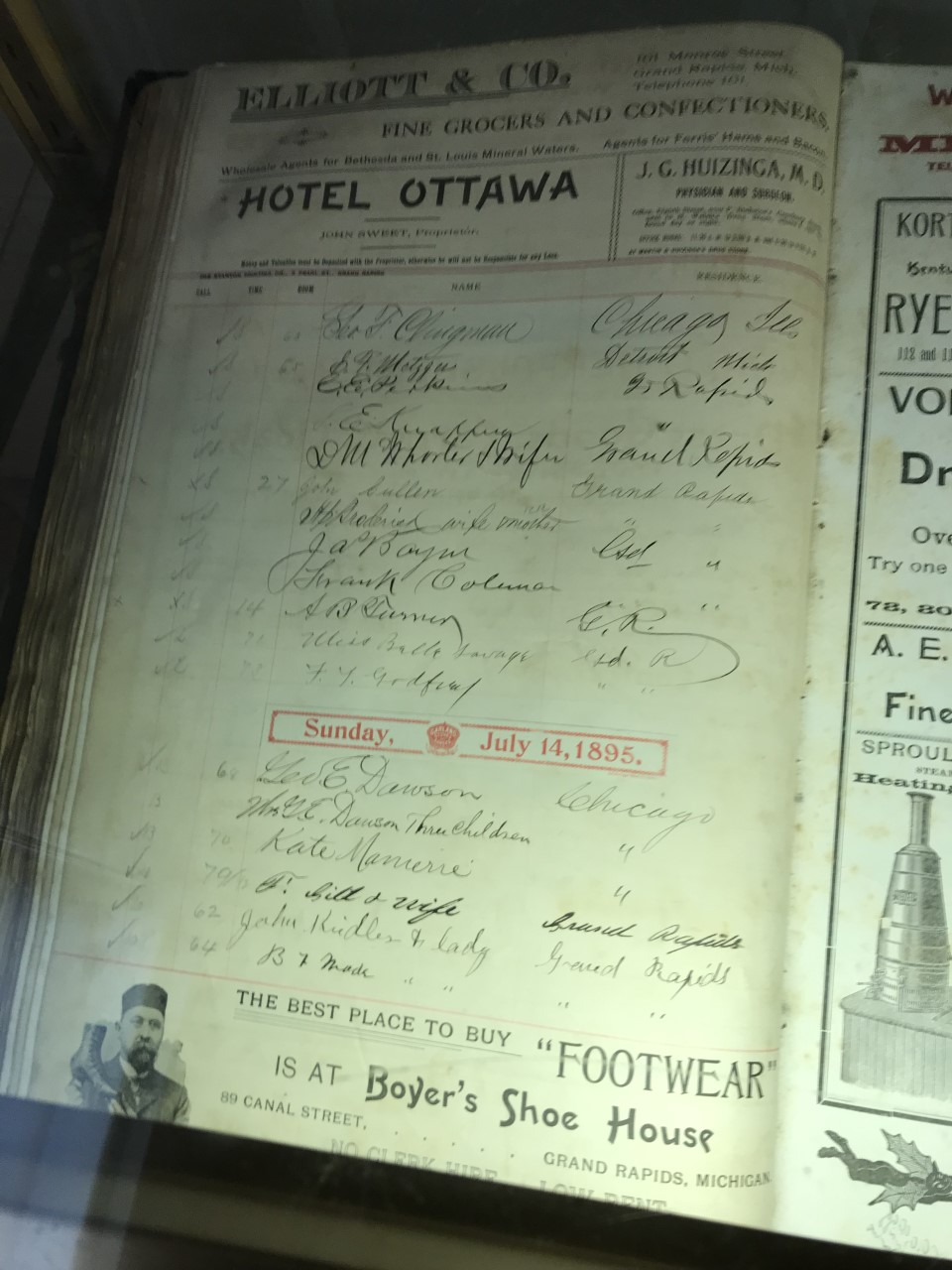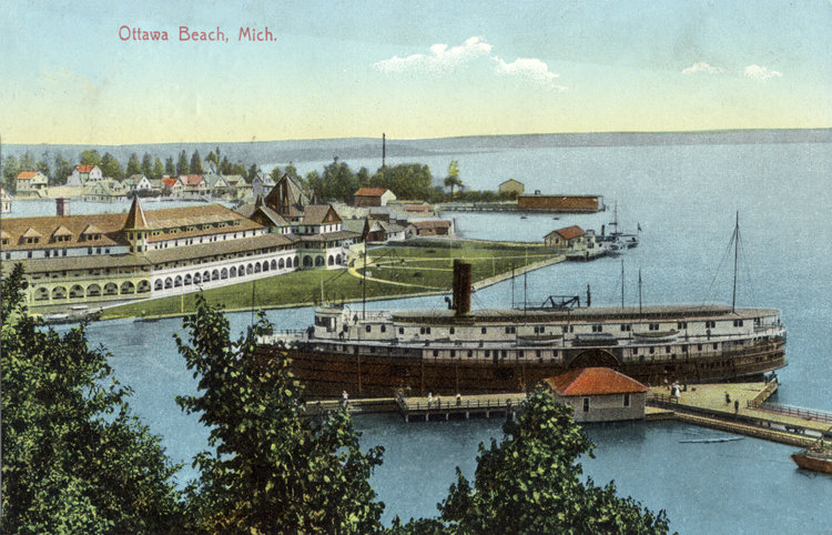 The hotel was a popular tourist destination in the late 1800s when steamships brought guests, like the heroine in my novel, across Lake Michigan from Chicago to vacation at the beach. Unfortunately, the hotel burned down in 1923 and wasn’t rebuilt. The only thing that’s left is the brick pumphouse that once generated electricity for the hotel and nearby cottages. The pumphouse is now a lovely little museum that features a display of the hotel’s guest book and other artifacts from that time period.